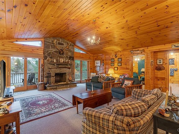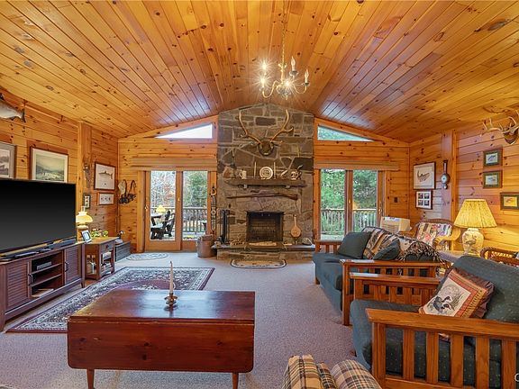 Nestled on 1.86 acres, this log cabin offers 400 feet of prime water frontage on the world-famous Salmon River. This home features 1,344 sq. ft. of living space with 3 bedrooms and 2 full bathrooms. The open-concept kitchen, dining, and living area serves as the heart of the home, highlighted by knotty pine cathedral ceilings and a custom floor-to-ceiling stone fireplace.