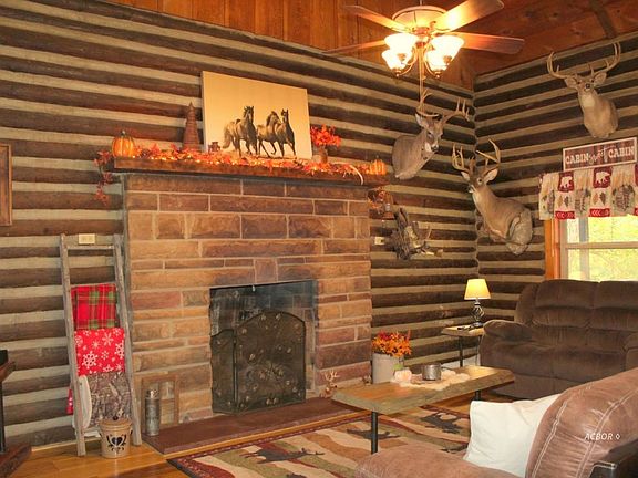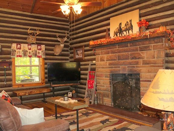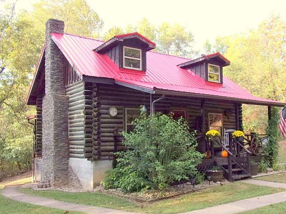 Have you ever wondered what it would be like to live in a log cabin like you see in paintings? The kind that looks super cozy & inviting with the full length front porch, stone chimney & character that speaks to you? Look no further because you are about to fall in love! This 3 bedroom 2 bath log cabin on 5.5 m/l acres w/ free gas will answer all of your dreams. The moment you enter you will see the pristine care this log home has had over the years. Poplar wood floors & a gas fireplace in the living room. Eat in kitchen w/plenty of counter space. A nice sized bedroom w/new carpeting & a full bath on the main floor. The upstairs loft area has new carpeting & is perfect for a rec room or office. A bedroom is located upstairs with 2 great size closets. In the lower level of this log home you will find another bedroom w/walk out to the patio, a full bath, mudroom & unfinished storage area. The 5.5 acres features woods & pasture. A wooden bridge takes you across to a fire pit area that has electric & water and could be a perfect spot to build another cabin or building. To the left of the driveway as you enter is a large flat piece of land perfect to build anything you wish!