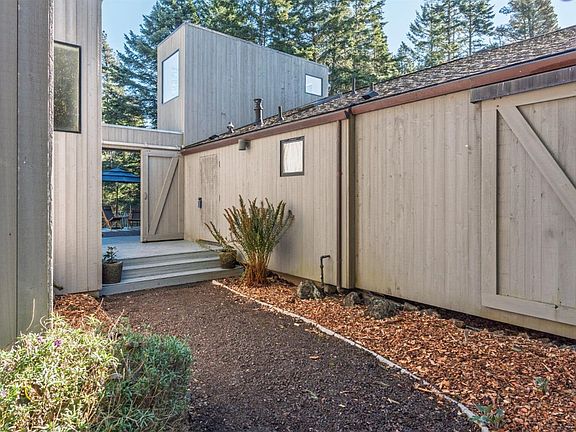 A striking ranch-style retreat designed by Sea Ranch Distinguished Architect Award winner Don Jacobs, this unique compound offers exceptional privacy, light, and livability. The main residence features an open great-room floor plan with soaring ceilings, abundant windows, and a dramatic stone gas fireplace anchoring the living area. The main house layout includes kitchen, dining, living room, den, primary bedroom, and one and one-half baths. A separated guest/studio unit provides a private studio bedroom and full bath ideal for visitors or creative space while a two-car garage includes workshop potential. The beautifully fenced grounds showcase a built-in lap pool with spa, new heater and child-safety cover, a ptanque court, outdoor shower and total seclusion. Extensively upgraded in 1997 with designer Bob Hartstock ,the home includes solar panels and numerous quality improvements by the current owner. An adjoining 1.54-acre +/- parcel is available exclusively to the purchaser for $179,000, offering plans, geotechnical report, and septic design an exceptional opportunity to expand or preserve privacy. Sea Ranch private airport landing strip is adjacent to the property... A pilots dream!