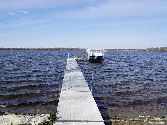 Very nice seasonal cabin on clear lake with 100' of sandy lakeshore. Great lake for fishing and recreational activities, less than 5 minutes from downtown Watkins. Knotty pine 3 season porch added years ago with great views of lake, aluminum dock included!