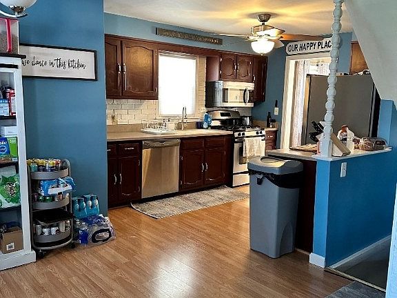 Move right in to this charming home with first floor master bedroom, first floor bath w/ heated ceramic floor, spacious eat-in kitchen, formal dining room and living room have hardwood floors, finished basement you’ll find the family room w/ fireplace and another full bath. Enjoy the garage, covered porch and a big backyard for a lot of memories to come! Some updates include new furnace 2021, new glass block windows 2019, 2 entry doors 2021, new electrical box & outside equip. 2021. Welcome home!