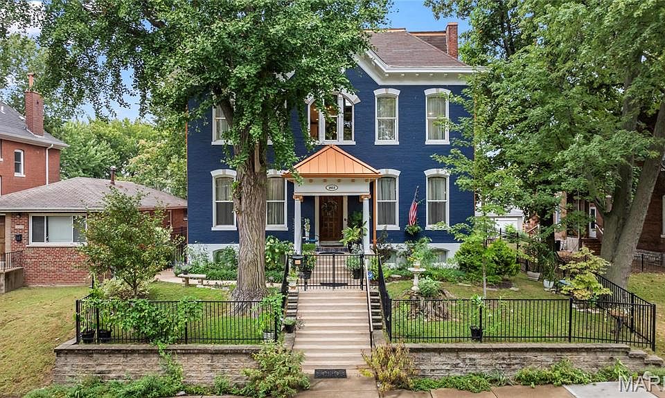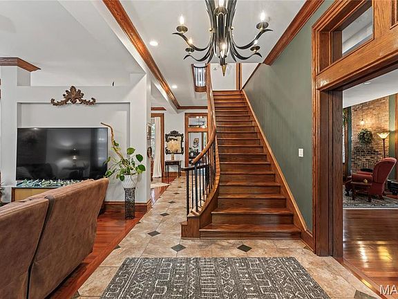 Est. 1884 - Timeless Elegance Meets Modern Luxury in this 3-Story Historic Gem. Over 5,000 square feet of meticulously renovated living space blends historic grandeur with thoughtful updates. From the impressive entry foyer and sweeping staircase to the 11' ceilings, Brazilian Cherry floors, and eight fireplaces (all gas-ready), every detail stuns. The main level features gracious living and dining rooms plus a massive family/library/billiards room—perfect for entertaining or unwinding. The chef’s kitchen is a showstopper: double islands, breakfast bar, dry bar, walk-in pantry, new LG gas range (2023), Zephyr hood, and granite counters. It flows seamlessly to a comfortable covered deck with ceiling fans. Enjoy the lush landscaping from this perch. Upstairs, the dreamy primary suite boasts a tray ceiling, exposed brick, private balcony, and spa-like bath with jetted tub and rain shower. Three more bedrooms (one styled as a dressing room), a full hall bath, and 2nd-floor laundry round out the floor. The third level offers incredible flex space: guest suite, home office, or studio—with full bath and walk-in closet. Step out to your rooftop sky bar—hot tub-ready (water and electricity) and primed for fireworks views. Fully fenced yard with herb garden, electronic gated parking, tuck-under garage with opener + workshop. Across from peaceful church gardens. Zoned HVAC, updated systems, 400 AMP electric, new high-efficiency furnace 2024. Truly extraordinary one-of-a-kind home.
