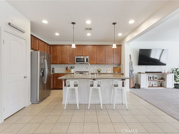 Bright and spacious home ready to be yours in Wildomar! This 5-bedroom, 3-bathroom home has everything you need - from a spacious open floor plan, to spacious bedrooms, to a great-sized yard! As you enter, you will be welcomed by the foyer that leads into a living area drenched in natural light. Further inside, you'll find a capacious bedroom and a full bathroom, along with a flexible space that can be used as a study area, a home office, or just about anything your imagination desires! For those who love cooking or staying in the loop while entertaining guests, the huge kitchen offers plenty of counter space plus a large center island with bar seating that can also serve as a breakfast table. The kitchen is equipped with stainless steel appliances, granite countertops, and a pantry for your storage needs. It flows seamlessly into the living and dining areas, making entertaining easy. There is direct access from the dining area to the three-car tandem garage, as well as a glass sliding door that leads out to the backyard. The outdoor space is not to miss as it flaunts a covered patio with a large concreted area, and grass-covered yard for weekend barbecues. Upstairs, you will find the versatile loft that can serve as a second living room, the laundry room, and three bedrooms with a shared full bathroom. Here, you will also find the elegant primary suite with heaps of space for a king-size bed and a well-appointed bathroom with a double sink vanity, soaking tub, a separate shower, and a walk-in closet. Situated in a fantastic neighborhood near the freeway, local markets, schools, shops, and dining options, this amazing home is not to miss!