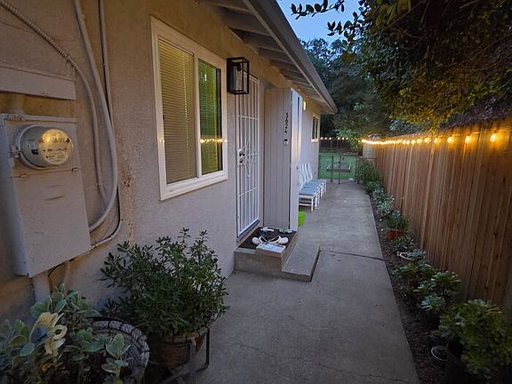 Carmichael 3 bed 1 bath duplex home with 1 car garage and large yard. Lawncare included in rent. washer, dryer recessed lighting, ceiling fans, Central heat and air. nice big private yard.