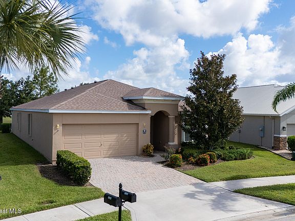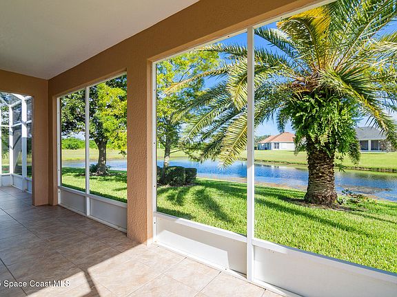 Experience the best of Florida living in this custom-built home, perfectly positioned on a premium waterfront lot in Heritage Isle, a premier 24-hour guard-gated 55+ community. Unwind on your under-truss screened porch with an extended lanai while enjoying stunning sunsets over the water and rocket launches right from your backyard. With nearly 2,300 sq ft of thoughtfully designed living space, this home offers an open floor plan featuring a private office/den, two spacious guest bedrooms in a separate wing, and a luxurious owner's suite with a tray ceiling, peaceful water views, and a spa-inspired ensuite. Indulge in a walk-in shower, double sinks, and a therapeutic walk-in jetted soaking tub. The chef's kitchen is a true showpiece, complete with solid wood cabinetry, seamless granite countertops and backsplash, a large center island, and newer stainless-steel appliances. Additional highlights include a 2021 roof, accordion storm shutters, and an oversized garage with ample storage. Your HOA dues cover full lawn and landscape maintenance, exterior painting, and access to the exceptional 21,000 sq ft Heritage Isle Clubhouse. Enjoy resort-style amenities including a tropical pool, state-of-the-art fitness center, ballroom, full-service restaurant, and a full calendar of activities - dinner dances, live entertainment, cards, arts and crafts, billiards, water aerobics, tennis, pickleball, and so much more!