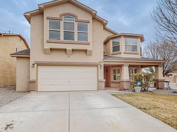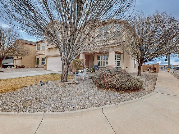 Step into this IMMACULATE Rio Rancho Beauty! This home offers 3 bedrooms, with an additional large flex room upstairs. 3 bath, 2 1/2 car garage home. The minute you walk in you will see the living dining room combo, upgraded wood laminate flooring, beautiful Spanish tile on the steps for that New Mexican feel. Large kitchen offers, newer stainless-steel appliances, large island, hard surface counter tops, tile back splash, great for entertaining. The open great room offers a cozy fireplace. The Primary suite is large with a cozy fireplace, balcony to see the NM sunsets and Sandia Mountains. The primary bath has jetted tub, large walk-in closets, double sinks. This home sits on a corner lot, with a beautiful private back yard. Shopping, parks and hospitals are nearby. Make an appointment