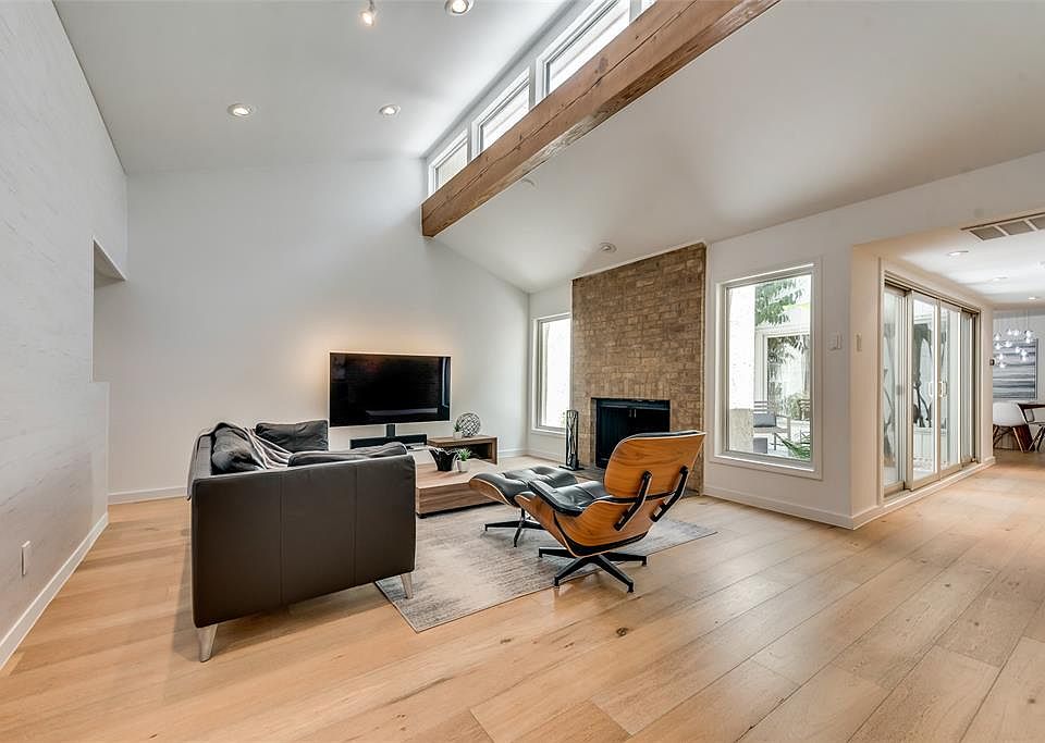 Lock & go mid-century dream in coveted Mansion Park neighborhood nestled between Oak Lawn & Uptown. No HOA dues. You will love the central, private atrium which floods natural light throughout the home. This smart home features a wet bar, fireplace, marble counters, 2 car garage plus private driveway for additional 2 parking spaces. Don't miss the Solar System, upgraded energy efficient windows, & fresh paint throughout the interior. Inquire for complete upgrade list. Hurry!