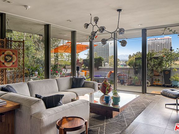 Architectural View Condo - Experience the fusion of mid-century design, captivating style, and world-class architecture in this unique one-of-a-kind residence designed by famed architect Ray Kappe, FAIA. The open-concept layout is bathed in natural light, accentuated by wrap-around floor-to-ceiling glass that frames breathtaking valley and mountain views. More recent interior updates by designer John McClain seamlessly blend eclectic and fun elements while preserving the original design's essence, earning the home features in prominent media, including Elle Decor and published in 'The Designer Within' and 'House Design Ray Kappe'. The kitchen features stone countertops, stainless appliances, floating shelving and a mirror tiled backsplash. A spacious one-bedroom with dual-vanity bath, in-unit laundry and additional work-from-home office space with durable grey-panel flooring throughout. A wraparound terrace of over 400 sqft offers a private retreat, providing stunning 180-degree views, creating true indoor/outdoor living. The generous patio is large enough for an alfresco living room, dining room, garden area and more. As an end unit, it shares just one wall, no one above or below, ensuring additional quiet and privacy. Amenities include a pool, guest parking, and additional unit parking and storage space. Located just minutes from the shopping, dining, and nightlife of Hollywood and Studio City, as well as attractions like the Hollywood Bowl, The Ford Theatre, Universal Studios with viewable fireworks displays, and more. The HOA has just completed significant upgrades for balcony structural compliance SB326, EQ retrofit, new railings and walkways, new high efficiency cool roof, hot water tank. As well as in-unit upgrades including new HVAC (heat & a/c) with Nest control. HOA is in the process of registering the building as a Historical Landmark, the building has already been designated as eligible for the National Register and California Register of Historical Places.