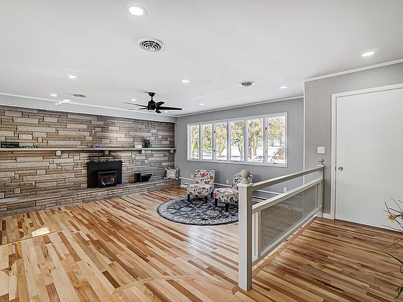 Nestled on 3 acres(double lot) of serene countryside, this completely remodeled gem offers modern living with a touch of rustic charm. Inside, you'll find brand-new hardwood floors throughout, an open-concept kitchen with new cabinets, granite countertops, and a seamless flow to the cozy living room featuring a fireplace. Upstairs boasts 3 bedrooms and 2 fully updated bathrooms, including a master suite with patio access and a brand-new pergola for outdoor relaxation. The finished basement offers a second fireplace, office nook, 3rd full bathroom, laundry room, and new flooring, paint and lighting.