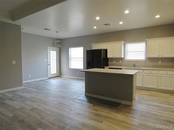 Oh So Pretty ~ New 1,385 SF Home. This three bedroom two bathrooms homes has a fresh open split floor plan with many high end features. Home is all electric, has two tone paint in grays, nine foot ceiling and coffered to 10 foot with crown molding in the living room. Hand trawled walls, bead board doors, ceiling fans, blinds, vinyl plank flooring and carpet in bedrooms. Kitchen has a nice island, upgraded cabinet, granite counter tops, big pantry and black stainless appliance, including a refrigerator. Master has dual walk in closets, dual sinks and floor to ceiling tile in the shower. Inside laundry room with upper cabinets takes you out to the two car attached garage with an 8 foot tall door and auto opener. Home has a tile roof and sits on a corner lot with front yard landscaping and auto drip system, a block wall, RV gate and dump. Seller will be reviewing all offers Saturday night 6/19/2021 at 7:00 pm. 3625 N. Kenneth Rd. Kingman AZ.