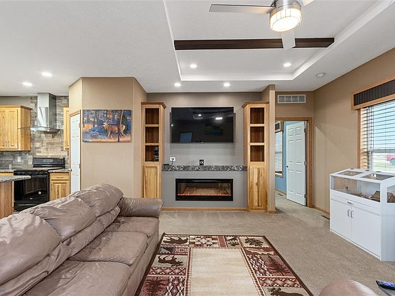 This custom-built modular home is located in a gated community on a 2.25 acre lot w/eliminated title and on perm foundation w/4ft crawl space. Interior boasts an open concept design with built- in entertainment center (TV System remain) ceiling fan, electric FP w/blower. Spacious main bedroom, ensuite offering 2 sinks, soaking tub, separate fabulous shower. Outdoor amenities include a covered patio & year-round outdoor kitchen with/views of 80 acres of state-owned land to the NW teeming with wildlife. Spacious kitchen w/hickory cabinets, laminate counter tops, pantry, soft-close cabinets & island. Water is supplied by two 1,725-gallon cisterns w/delivery services arranged byweekly. Notable updates inc. newer pump & pressure tank. LP Smart siding, new roof added in 2025. Property incl 30 X 30 shop w/loft, RV covered storage w/30amp service, a 12 X 16 chicken coop. Ready for you!