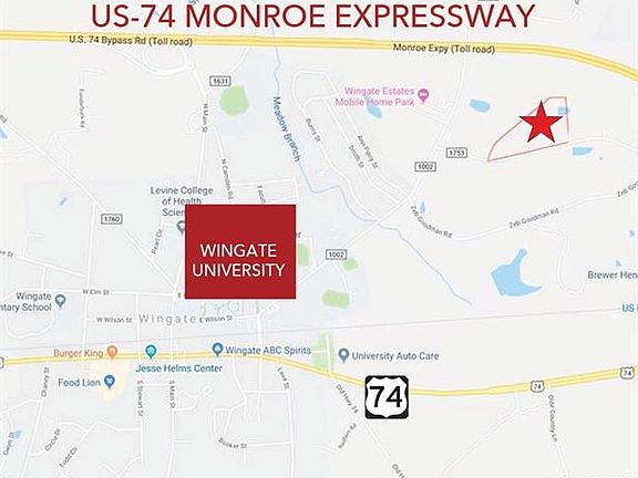 +/- 16.02 Acres Residential Home on property. 3 BR, 2 Bath with ample living space for living and entertainment. Less than 1 mile from Wingate University. Quick access to new Monroe Expressway. Potential opportunity for additional acreage surrounding property.