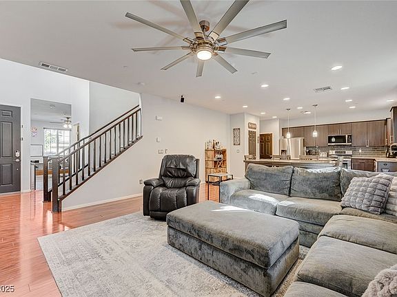 Welcome to this move-in ready 3-bedroom, 3-bath home w/ a den and loft, located in the guard-gated Village of Avellino! The open-concept main level offers a spacious family room, dining area, and a versatile den perfect for a home office or play space. The kitchen showcases modern pendant lighting over an eat-in island, a new refrigerator, new microwave, reverse osmosis, updated backsplash, and convenient roll-out trays in the lower cabinets. Upstairs, you’ll find a generous loft, two secondary bedrooms, and a full bath. The primary suite features a walk-in closet and a large ensuite bathroom with a separate tub, separate shower, and dual sinks. Additional highlights include stunning stainless steel oversized ceiling fans, recessed lighting throughout, window coverings, and an upstairs laundry room. The AC unit was replaced 5 years ago and includes a 10-year warranty. If you’re looking for a truly turn-key home in a highly sought-after guard-gated community, this is the one for you!
