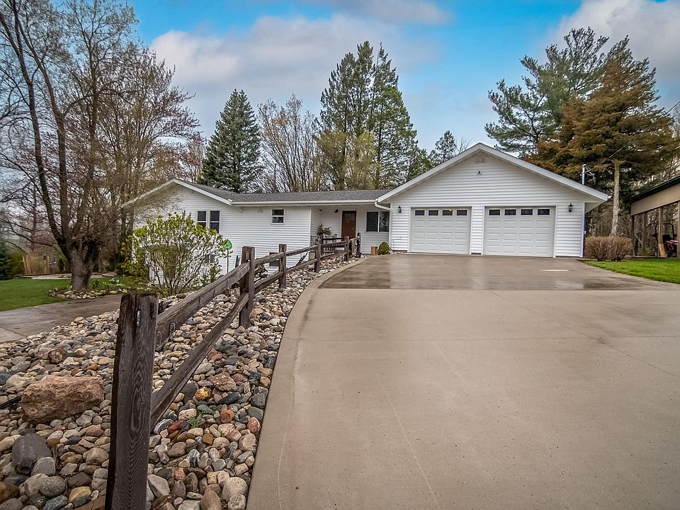 This 4 bedroom 3 bath home is a lake lovers dream. With over 200 feet of private frontage on all sports Hart lake you can step right out onto your 40 foot dock and enjoy water sports or just enjoy a beverage in your gazebo on the lake. The main level has a great open feel perfect for entertaining. You'll notice the beautiful quartz counters, stainless steel appliances and gorgeous wood floors as soon as you open the door. The living room has amazing windows to enjoy the lake views. The lower level has its own kitchen, family room, bathroom and 2 bedrooms with a slider right out to the patio and fire pit. The crown jewel of this property may just be the 2nd garage measuring an impressive 30x48 that is heated, insulated with a Bendpack pro 9,000lb lift. Please see attachment for all extras The main level was new in 2017. The list of upgrades and extras is extensive from plumbing, HVAC, roof, electric, spray foam insulation, etc. be sure to ask for the list.