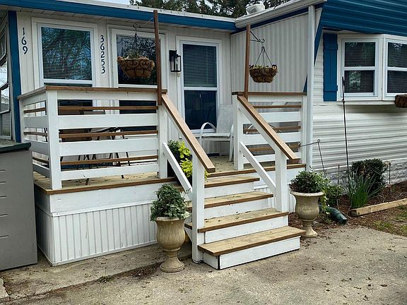 Tastefully decorated single wide modified home in the convenient community of Camelot Meadows. This home has central air, is mostly all drywall with recent beautiful vinyl plank floors throughout. New bathroom vanity, closet doors, pocket door, and barn door. Recently painted. Large Four Season room with sliding doors to deck, fenced yard, with outside shower and shed. Square foot is approximate. Roof resealed recently, and new belly wrap and insulation under home. Most furniture conveys with sale. Community has pool and clubhouse (Membership is optional). Potential buyer must be approved by Park. This is not a ride-by! Make appt and take a look