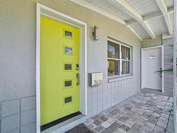 Welcome to Hudson Heights! This charming 2-bedroom, 1-bath home is ready for its next owner and has the option to come fully furnished! The home is located in highly sought after Hudson Heights and is high and dry - requiring no flood insurance! Step into the bright foyer with classic terrazzo floors and natural light streaming into the inviting living room. The kitchen features modern updates, including sleek cabinetry and stainless steel appliances. Adjacent to the kitchen, the dining room/den combo offers plenty of windows, ideal for a sunny workspace or morning coffee nook. Step outside to your spacious backyard, complete with string lights — perfect for relaxing evenings or entertaining guests. Enjoy a dip in the hot tub (included!) under the shade or unwind with your favorite music and a glass of wine. Whether you’re seeking a stylish turnkey home, a vacation getaway, or an investment opportunity, 3626 17th St N delivers comfort, convenience, and good vibes. Schedule your private tour today and experience your own Hudson Heights oasis!