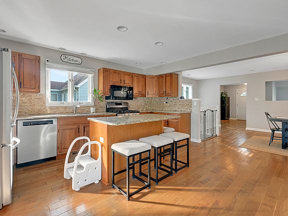 Beautiful home to make your memories. Featuring 4 bedrooms with a primary en suite that features heated floors in the bathroom and a walk in closet! The dining room opens up to the lovely kitchen with granite counters and a nice big island. The main floor boasts a second bath with a whirlpool tub, laundry including washer and dryer with utility tub, gorgeous high-end wood floors with bedrooms having comfortable carpeting. The full basement has an inviting family room, game area, and bedroom, secret door to a workshop area and lots of closet/storage space including a 4 foot concrete crawl that measures 15'x38'. Concrete side drive to a heated 3-car garage with epoxy floors. You can drive through having front and rear overhead doors. There are pull down staircase to floored attic for more storage. Fenced yard and a lovely deck compliments the hot tub for winter and summer pleasure. Exterior lighting? It is staying and the best part is that you control it with an app! Pick your color from any color imaginable on your phone! There is an outdoor storage area behind the garage for a boat or an Recreational Vehicle. This home is definitely move in ready!