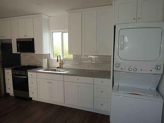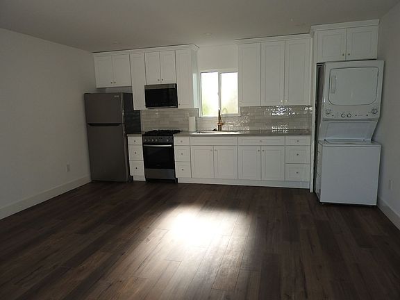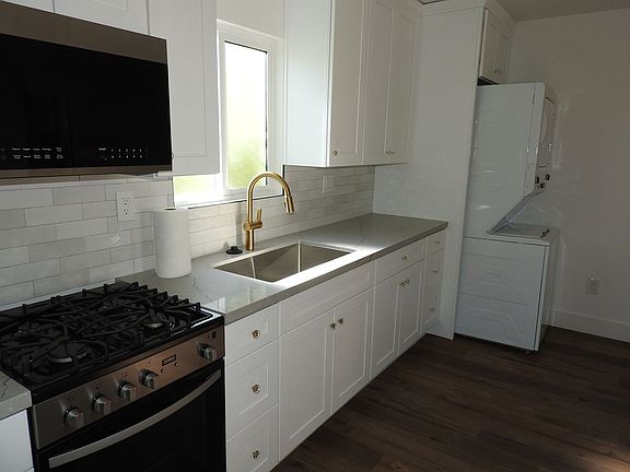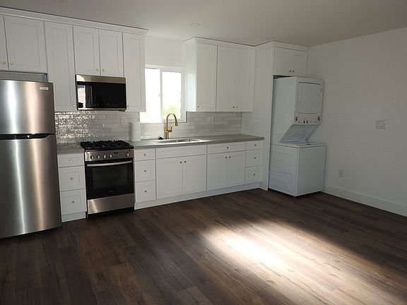 2 bed 2 bath upstairs apartment. Vinyl plank flooring, all new cabinets, countertops, appliances, bathroom tile and fixtures. Split system A/C and heat, washer/ Dryer inside the unit. One assigned parking space, small outdoor common area. Solar w/ battery backup.