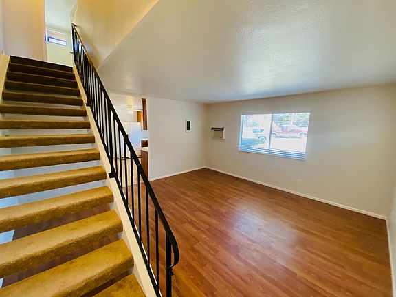This spacious 2 bedroom /1.5 bath is located in the heart in Spring Valley! Conveniently located close to Grocery stores and restaurants you have everything you need to satisfy your "inner San Diegan". This apartment home is unique as it is the only one in the community that two-stories, and a washer/dryer in unit. As you enter the first level, you are greeted by a spacious open concept living area accented with a large window, wall A/C unit and, plank flooring. Through the living room entering into the kitchen, you will notice that it is equipped with a full-size residential refrigerator, stove, microwave, dishwasher and plenty of cabinets and cupboards for storage. Just off of the kitchen, is a half bathroom/laundry room convenient for guests and your very own washer/dryer! Head upstairs, and you'll notice the full bathroom that features dazzling lighting, a shower/tub, and lots of vanity space. Both bedrooms offer vinyl wood flooring, and plenty of closet space The master bedroom has a private balcony to enjoy your morning coffee on and even features a walk in closet. This apartment home also has the convenience of one assigned parking space. Small pets welcome with pet rent and deposit. Call us today to set up a virtual showing!