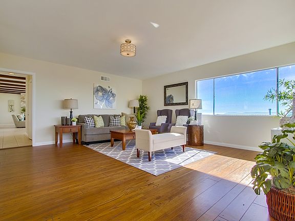 This is the one your clients have been looking for! A spacious one-level home perched at the crest of the hill offering breathtaking panoramic ocean, coastline & Catalina views. You'll be captivated from the moment you reach the front porch of this home that has been upgraded in some places and left original in others to create a cool retro-modern feel. Well-designed floor plan offers a spacious formal living room when you enter the home and a "great room" at the rear of the home that combines the family room with fireplace, dining area and kitchen. All of the living spaces and kitchen feature numerous windows to capture the incredible views. Beautiful refinished hardwood floors are in all bedrooms and living area. View deck over garage is a great place to relax and enjoy the view while the rear yard is a blank canvas with the Pacific Ocean and Catalina Island as a backdrop for whatever improvements you want to make. Interior and exterior have been freshly painted and there's a brand new 30 year roof. Located only 1 1/2 blocks from the ocean in the peaceful Palisades area where you'll enjoy afternoon breezes, fresh ocean air and morning walks atop the ocean bluff. There's so much more but you'll have to see it for yourself. HURRY!