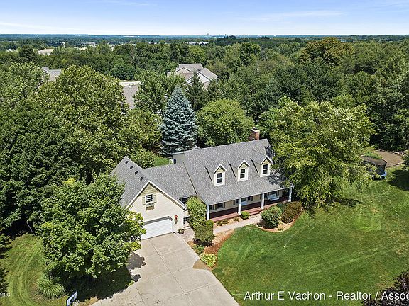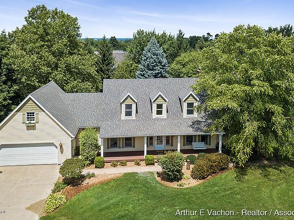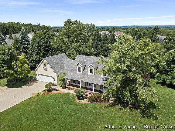 Lovely home in a park-like setting on 3.65 acres. Minutes from all Grandville has to offer. New updates including soft close kitchen cabinets/drawers, quartz counters, granite sink, tile backsplash w/ under cabinet lighting. New water heater and garage door opener. Newer fridge and dishwasher. Brazilian teak wood floors. Storage galore! Offering a spacious walk-in pantry, main floor laundry, drop zone, main floor master en suite, home office, 3 season room, and 3 large cathedral bedrooms on the2nd floor. Large finished basement to include pool table is great for entertaining! A large unfinished room above garage. Tranquil covered front porch, 2 tiered deck with sunken Hot Tub, 2 storage sheds, tree house, fire pit, walking trails thru wooded areas with fruit trees, Raised garden and more!