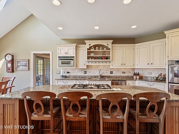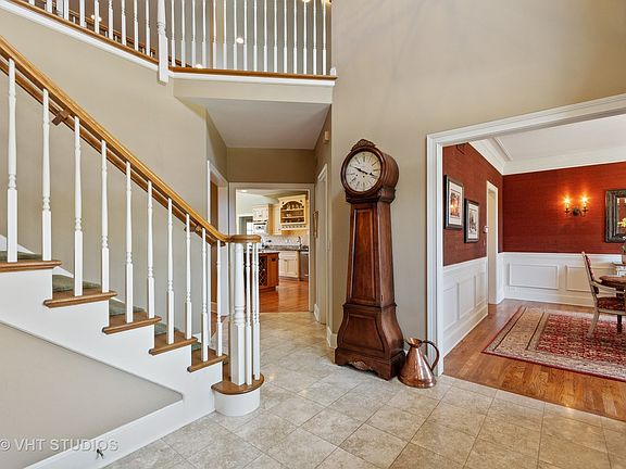 Warmth and elegance abound throughout nearly 6500 SF of living space in this custom home in the desirable Tradition neighborhood. The 2 story foyer makes a lasting first impression with an abundance of millwork, custom tile and hardwood flooring. The inviting library is to your left with paneled walls, fireplace and a double sets of french doors. The spacious dining room is to your right and leads through to the butlers pantry and kitchen for ease of entertaining! The expansive kitchen features granite, a large island with breakfast bar, stainless steel appliances, and an eat in area with vaulted ceiling and sky lights. The kitchen is open to the gracious family room featuring vaulted ceilings, a 2 story stone fireplace flanked by double sets of french doors that open to the deck and patio. A FIRST FLOOR MASTER BEDROOM with vaulted ceiling, hardwood flooring and doors leading to the deck and patio, his and hers walk in closets and gorgeous en suite bath! Off the kitchen is a large screened in porch, mud room, and the laundry room with plenty of cabinets, counter space and sink. Upstairs is a very large bonus room, a big loft area and 3 more bedrooms, 1 with ensuite bath, the other 2 with a jack'n jill bath. The finished lower level is really special with the repeat of upstairs millwork, and spacious tv area, large bar with with wine fridge, full size refrigerator, beer tap with keg fridge and dishwasher. The lower level also has a 5th bedroom and full bath. You will find plenty of space in the storage room as well! Outside is the real treat on this quiet street where you will find plenty of privacy backing to a conservation easement. Freshly painted exterior, refurbished cedar shingles with 5 year warranty, and new AC add to this impeccably cared for home. Minutes to St. Charles North High School, bike trails, and riverfront!