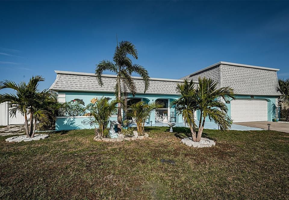 One or more photo(s) has been virtually staged. Enjoy a peaceful tranquil lifestyle. Welcome home to this gorgeous waterfront home. Close to parks, beaches and all the necessities, you will want to make this your full-time home or winter retreat. Watch birds and wildlife from your lanai, dock or observation deck with views for miles. This fully updated and move in ready home features a split bedroom layout and oversized rooms. With almost 1700 sq ft, 2 bedrooms, 2 baths, inside laundry room, spacious lanai and a 2-car garage. There is a newer roof and windows, plus RV or boat parking in the fenced yard. The bright spacious kitchen has Quartz countertops, newer stainless appliances and cabinets to making cooking a pleasure. Tropical themes inside and out make you think you are always on vacation. Your next home is waiting for you, it's time to enjoy the Florida lifestyle you have always dreamed of.