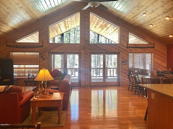 Great White Mountain Country Club home. New additions and tastefully remodeled. Will accommodate lots of people/guests.Great room, vaulted ceiling, soaring windows open on to large covered deck. Wood floors, fireplace, sunken wet bar. Large master downstairs with sitting area and fireplace. Two additional bedrooms and bath also down. Extra large upstairs bunk-room with bath. Double car garage, large lot, & close to club house. Fully furnished except personal items.