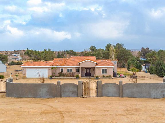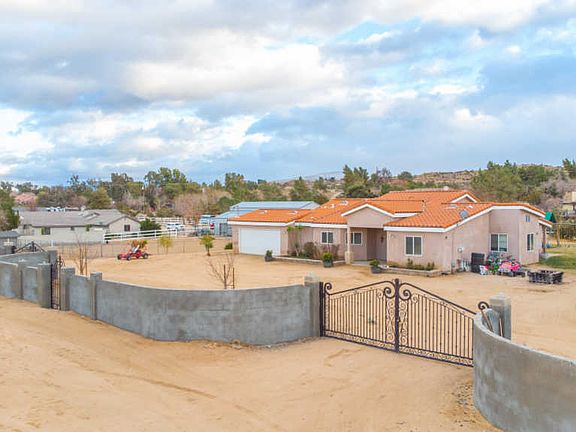 Lovely Custom Ranch home nestled in the exquisite area of Palmdale Hills. Sitting on 2.5 acres and protected by a solid concrete wall with double footing, extra rebar, extra reinforced, and custom wrought iron gate. Wall also has electrical pre wiring. Walk into your new home and be amazed by your gourmet kitchen with a reverse osmosis system. Huge island and plenty of counter top space. Separate dining area and charming family room with high vaulted celings. 3 sizeable bedrooms plus a grand Master Suite. You will love the walk in closet leading into the ample bathroom highlighting the jacuzzy tub. Enjoy your coffee on your lovely patio overlooking into your huge property with endless possibilities. Nice grass area and playset for kids. Property has been graded for a huge workshop (2800 sqft shop available for purchase). Fruit trees throughout and garden area to grow your own veggies. This is a must see!