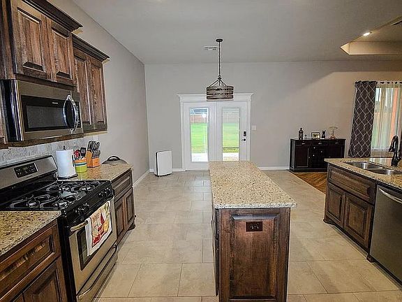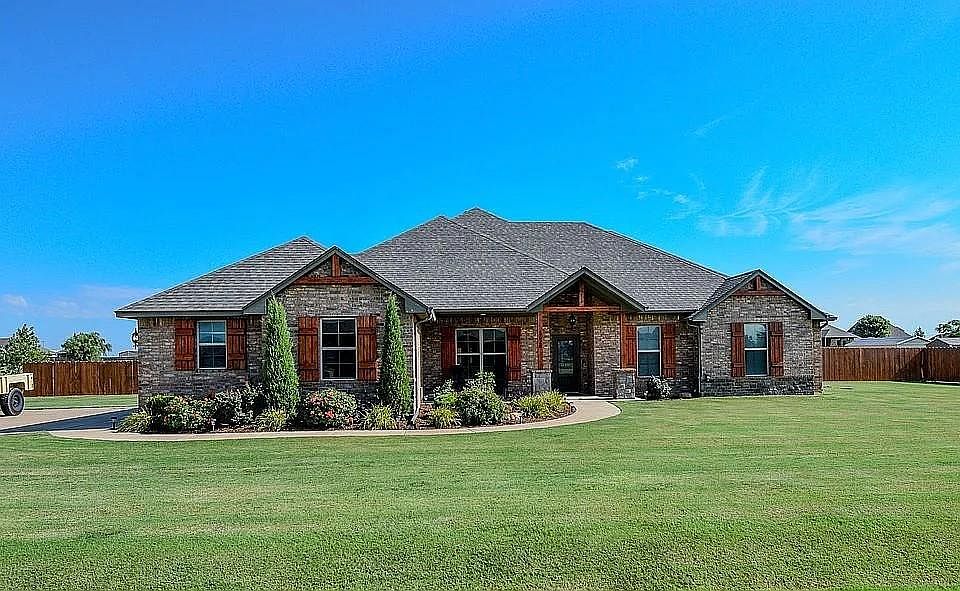 Built in 2017 and thoughtfully enhanced since, this like-new 5-bedroom home sits proudly in the highly coveted Longhorn Estates subdivision. With a brick exterior, neutral color palette, and striking sloped roofline, the curb appeal is as impressive as the interior. Step inside to a bright, welcoming foyer with a view straight into the heart of the home. The living room greets you with soaring ceilings, a cozy gas fireplace, and abundant natural light. Flowing from the living room, the open-concept design leads into a spacious dining area and a kitchen featuring granite countertops, stainless steel appliances, a large pantry, and a breakfast nook that overlooks the private and spacious backyard. Just off the kitchen, step onto a large, covered patio ideal for entertaining or relaxing, with added privacy thanks to a new wood privacy fence. Back inside, the master suite offers a peaceful retreat with a walk-in closet and a spa-like bath featuring a jacuzzi tub and walk-in shower. The laundry room sits just steps away for added convenience, as well as access to the three-car garage. The split-level design offers a spacious and functional layout designed for modern living. With distinct living areas, this home provides the perfect balance of open-concept flow and private retreats. Beyond its great layout, this home has been upgraded with a host of high-quality features that enhance both comfort and functionality. Enjoy the fresh, modern feel of all-new paint throughout the entire home, complemented by new flooring that includes wood grain tile, luxury vinyl planks, and high-end residential carpet. The owned water softener and reverse osmosis system provide premium water quality, while flush-mounted LED lighting and updated fixtures brighten every space with style and efficiency.