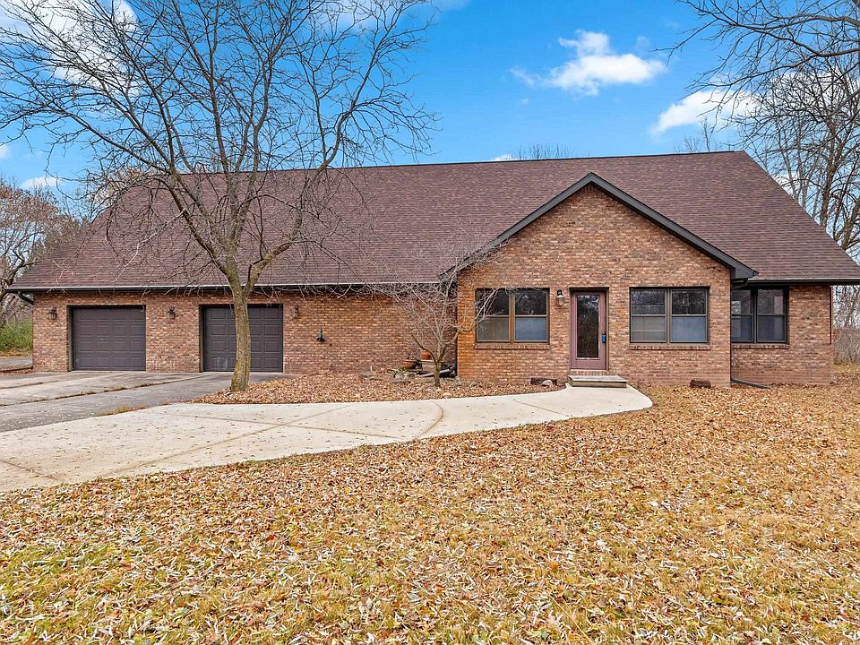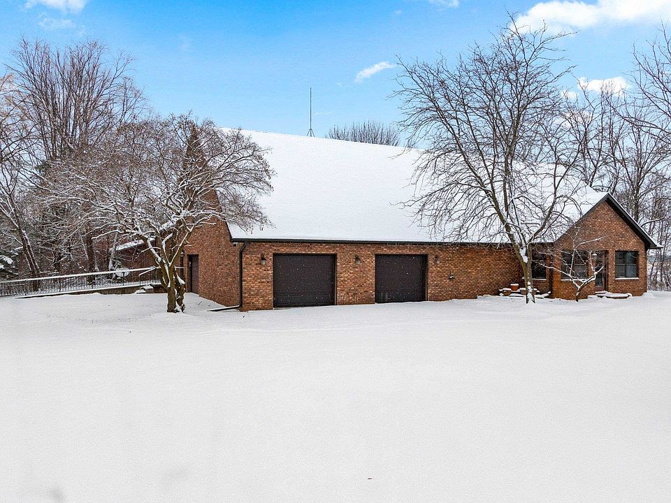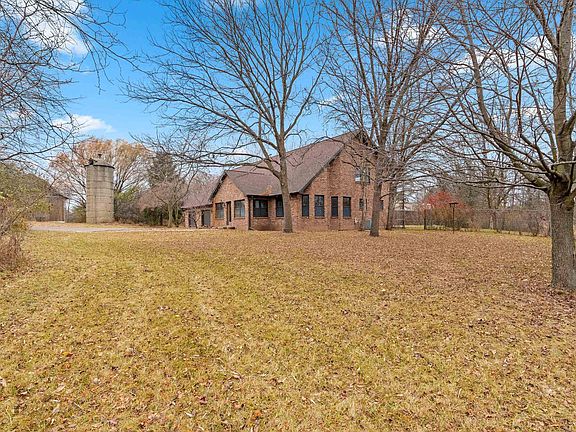 All-brick estate offering 6,182 total sq ft on 36.5 acres, with the majority of the acreage fenced. Property features 3 bedrooms, 3 offices, and a studio showcasing a rock wall and waterfall. Primary suite offers three closets, whirlpool tub, and Large Primary bath. The guest suite includes its own entrance, second kitchen, and 2nd whirlpool tub. The finished lower level provides a family room, workshop, two photography dark rooms, and a half bath. Outside you'll find two outbuildings: a restored 28x40 barn (2 garage doors) and a 100x60 building with a 30x30 2.5-stall garage. Outbuilding highlights include in-floor heat, 4 ductless heating/AC units, and a half bath. Come see the possibilities this incredible estate offers!