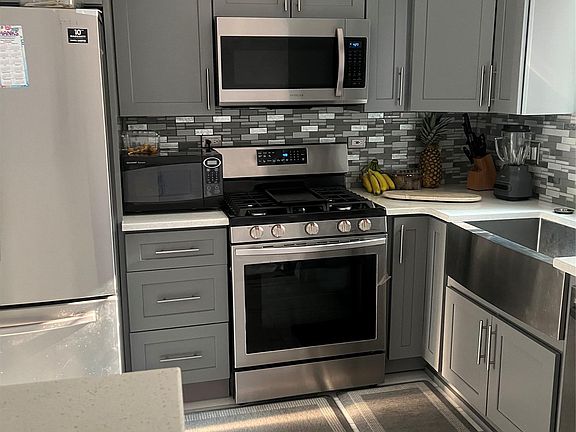 Newly renovated single-family home nestled in the Baychester are of the Bronx. House is 3 stories high. First floor feature finished walk in and out basement at street level. The basement features 2 large rooms, lots of closet spaces, gas boiler room and hot water tank, and newly renovated bathroom with standing shower. Second floor features living room, formal dining room, kitchen and half bathroom. ALL appliances are new and stainless steel. Ceramic tiles in kitchen and newly floors in living and dining room. This level walks out to a cozy back patio which also leads to the immaculate backyard. Third floor features 3 large size bedrooms, upgraded full bathroom and skylight in hallway ceiling. this house features lots of closet's space. Move in ready no work needed. Close to schools, buses, train and shopping area. This home won't last. come take a look!