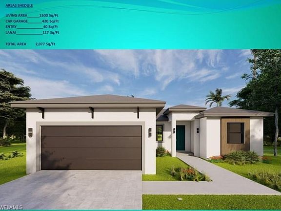 Brand-new construction in a prime Cape Coral location! This 3-bedroom, 2-bath, 2-car garage home is built to impress with impact-resistant windows and doors, a high elevation for extra peace of mind, and modern finishes throughout. Estimated for completion in just 2 months, this residence blends comfort, safety, and convenience. Enjoy being within walking distance to Island Coast High School, and only minutes from Publix, Walgreens, and easy access to I-75. Renderings and photos shown are of a similar model for illustration purposes. Don’t wait—secure your new home today!