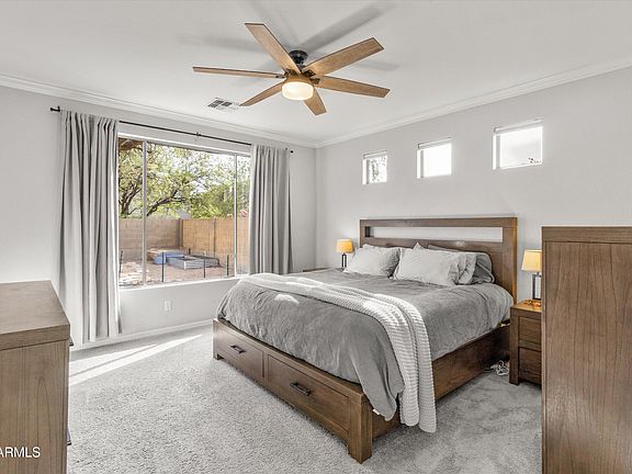 Covered patioLow-maintenance desert landscapingSeparate officeAbundant cabinetryWalk-in closetSpacious bathPrivate primary retreat