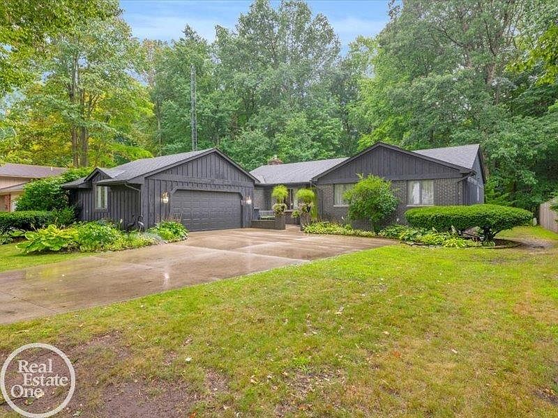 Stunning 2.45 wooded acres in OLD FARM Sub, this sprawling 2144sqft home is breathtaking, very open floor plan w/30x18 great room w/gas fireplace, dark bamboo flooring, loads of recessed lighting, amazing glassed in 17x12 sitting room done in "shiplap" off the back of home w/newer windows & door-wall, composite deck overlooks park-like setting of mature trees, white Euro-style kitchen cabinets w/stainless steel stove, side-by-side fridge & microwave, newer black dishwasher, dark marble/granite countertops, large stainless steel undermount sink, large laundry room w/black countertop over white cabinets & stackable washer/dryer, formal dining room, updated 2.5 baths w/vanities & countertops, master bath completely redone w/custom tiled walk-in shower, 6 panel doors, 3 dimensional roof, side turned 2 car garage w/insulated door, very welcoming courtyard entryway w/dual entry doors, tastefully landscaped w/loads of planted beds, oversized shed at rear, great for entertaining, definitely a pleasure to show.