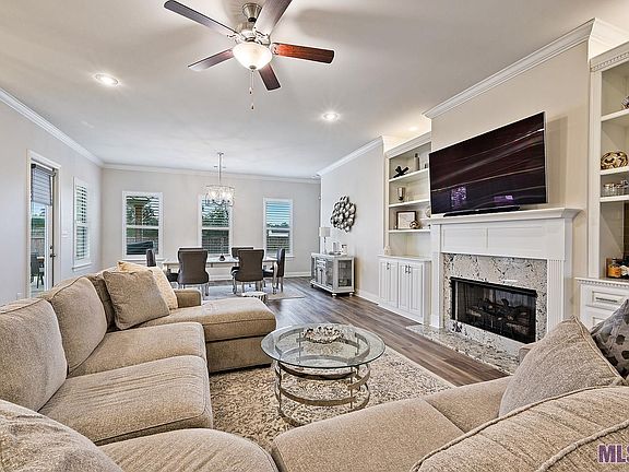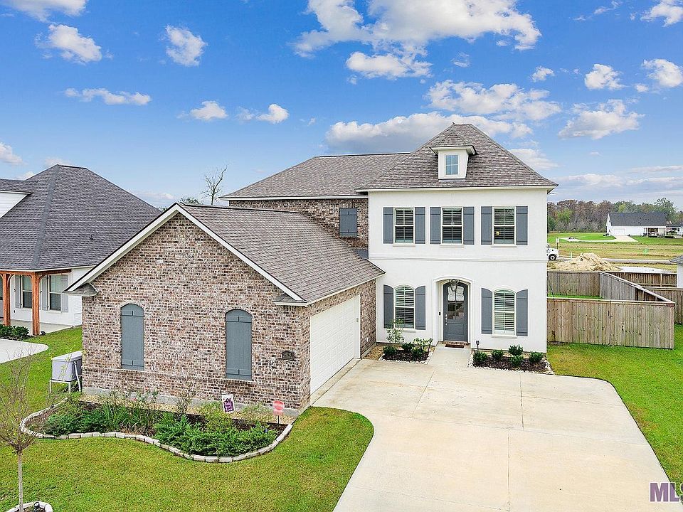 Five bedroom home in the Belle Savanne subdivision of Dutchtown. Step into the grand foyer to views of the great room and the large extended covered patio and backyard. Gourmet kitchen features stainless appliances including gas cooktop, single wall oven, built in microwave, painted custom cabinets with extended uppers, under cabinet lighting and 5" hardware, 3cm granite, herringbone marble backsplash, pot filler, large island bar with custom pendant lights, and walk-in pantry. Living room features ventless gas fireplace with granite surround, custom built in bar with beverage fridge. Master bedroom includes a spa-like bath, featuring a separate 5' soaking tub and custom tiled shower with a seamless shower door, dual sinks, framed mirrors, separate water closet, and huge walk around closet with custom wood shelving. Downstairs you will also find a study/bedroom and a full bath for guests. Beautiful, stained wood staircase will lead you upstairs where you will find a large loft, 3 nice-sized bedrooms with walk-in closets, and 2 full baths (one being a Jack and Jill). Stunning LVP flooring throughout the open living areas and master bedroom, oversized 12 x 24 tiles in all wet areas, and plush carpet in all bedrooms. Garage entry has custom built mud bench/drop zone. Other upgrades include a fully fenced in back yard, plantation shutters and a whole home generator. Subdivision features lakes, green space and a community pool and cabana.