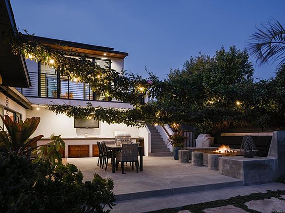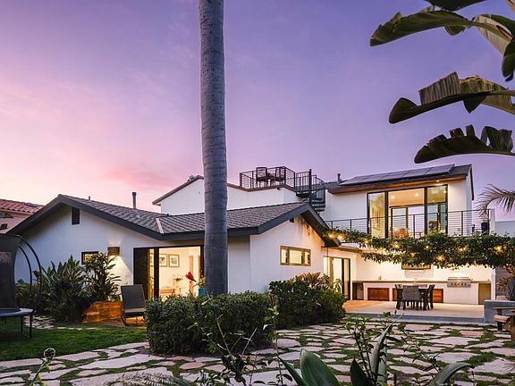 Sitting atop a sunlit hill in Leucadia, this one-of-a-kind modern gem offers unbeatable panoramic Pacific Ocean views that steal the show. Reimagined in 2018 by Indoteak Coastal, this home is a masterpiece of craftsmanship, bold design, and sleek sophistication. The sprawling layout boasts a 4 bedroom main house plus office, a detached casita, and outdoor spaces wrapped in lush landscaping. Inside, 100% FSC-certified reclaimed teak shines through custom tiles and gorgeous finishes, while the reverse floor plan flaunts an ocean-view great room, a custom chef’s kitchen, and a spacious family/game room upstairs. The main level houses all bedrooms—including a plush primary suite—plus a flexible office, all soaking in that perfect coastal weather of endless sun and cool breezes. Outside, it’s an entertainer’s haven: a beautifully situated patio with a built-in barbecue, a fire pit lounge, a manicured lawn, and a spa for year-round family gatherings. The casita, with its covered deck, morphs into an office, gym, or retreat, while extras like solar panels, a rooftop deck for sunset gazing, a wine fridge, and ample parking (RV or boat-ready) seal the deal. Just a short walk from South Ponto Beach, this home promises relaxing summer beach days with soft sand and gentle waves mere moments away. For an elevated evening, stroll to the famous Alila Marea Hotel and savor sunset cocktails at its rooftop lounge, where the Pacific horizon puts on a nightly show. This isn’t just a home—it’s a rare blend of jaw-dropping views, unique design, and SoCal soul, perfectly perched to make every day feel like a getaway just west of the 5, steps from beaches and local hotspots, rooted in Leucadia’s laid-back charm.