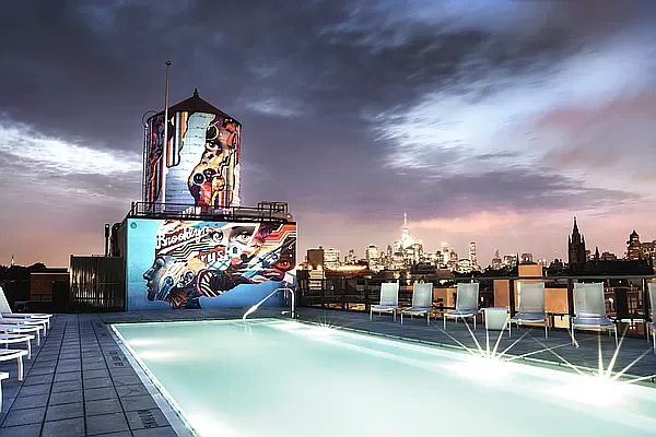 Bosch stainless steel appliancesFull gymWide plank hardwood floorsNest thermostatsYoga studioBrooklyn crush rooftop poolRooftop lawn