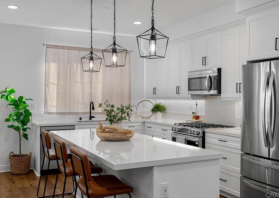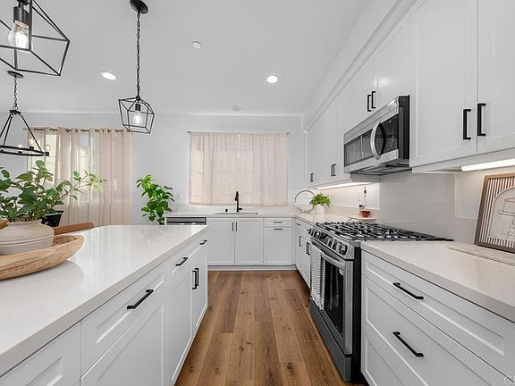 Seize the rare opportunity to own this 2024-built luxury townhome showcasing nearly $45,000 in premium designer upgrades! Offering 3 bedrooms, 3 bathrooms, and 1,461 sq. ft. of beautifully curated living space, this home blends modern sophistication with everyday comfort. The open-concept layout is drenched in natural light and showcases elegant flooring, recessed lighting, and sophisticated designer touches throughout. At the heart of the home, the chef-inspired kitchen takes center stage with an oversized island with breakfast counter seating for four, sleek quartz countertops, high-end stainless steel appliances, a spacious pantry, and stylish pendant lighting. A dedicated dining nook offers the perfect spot for gatherings, while the seamless flow into the expansive living area creates an inviting space ideal for both entertaining and everyday living. Upstairs, the primary suite boasts a spa-like bath with dual vanities and a generous walk-in closet. Two additional bedrooms offer flexibility for guests, a home office, or a growing household, while a convenient upstairs laundry adds ease to daily living. The versatile ground-level entry space can be reimagined as a stylish home office or a contemporary mudroom. This smart, energy-efficient home features solar panels, dual-pane windows, a tankless water heater, a whole house fan, and a finished 2-car garage with epoxy flooring and overhead storage. Residents enjoy access to thoughtfully designed community amenities including a greenbelt, fire pit, BBQs, picnic tables, and a kid-and-pet-friendly play area. Perfectly located in desirable South Escondido, this home offers quick access to the San Diego Zoo Safari Park, Stone Brewing World Gardens, Lake Hodges, Orfila Vineyard & Winery, North County Mall, and all the restaurants, shops and outdoor hot spots that make Escondido such a wonderful place to call home. Close proximity to major freeways connects you with the best San Diego County has to offer. Move-in ready and meticulously upgraded, this townhome delivers the ultimate combination of luxury, convenience, and lifestyle.