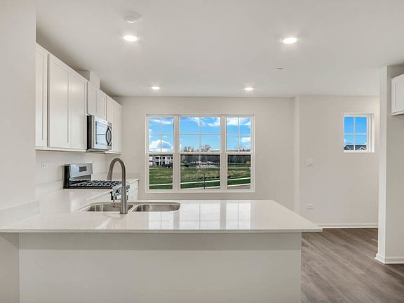 Discover yourself at 363 Bridgeview Ct., a beautiful new home in our Charlestowne Lakes community in St. Charles, Illinois. This townhome will be ready for a fall move-in! Homesite includes a fully sodded yard that is maintained throughout the year. This Monroe townhome plan offers over 1,600 square feet of living space with 2 bedrooms and a loft, 2.5 baths, and finished flex room. As soon as you step inside, you'll be greeted by the finished flex room, which is perfect as a den or playroom. Walking up the stairs, you will find this home's open concept living space. The expansive kitchen overlooks both the dining and great room areas, making it the ideal space to entertain. Additionally, your kitchen features designer cabinetry, a spacious island with quartz countertops, and pantry. Enjoy your large primary bedroom with a walk-in closet and connecting en suite bathroom. The rest of the upper level features a laundry room, loft, a secondary bedroom with a full second bath, and linen closet. You'll find luxury vinyl plank flooring in the kitchen and dining areas on the main level living space, bathrooms, and laundry. Impressive innovative ERV furnace system and tankless water heater round out the amazing features this home has to offer! Charlestowne Lakes is an upscale townhome community, tucked off Rt. 64, in a highly desirable area, loaded with everyday conveniences, and just minutes from the flourishing downtown St. Charles. All Chicago homes include our America's Smart Home Technology, featuring a smart video doorbell, smart Honeywell thermostat, Amazon Echo Pop, smart door lock, Deako smart light switches and more. Photos are of similar home and model home. Actual home built may vary.