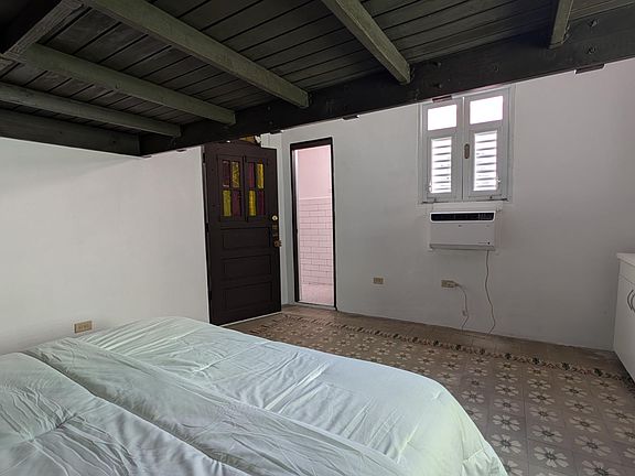 Cozy Studio with Bathroom, including a King-size Bed, Kitchen sink, Fridge with small Freezer, A/C, and Loft for additional space. 3rd floor walk-up. Includes the cost of water and electricity with a cap. Long-term renters welcome. No pets..