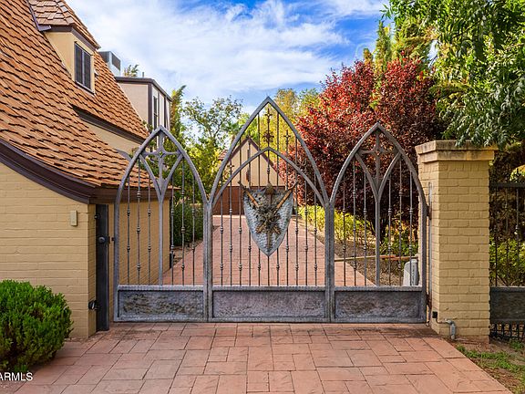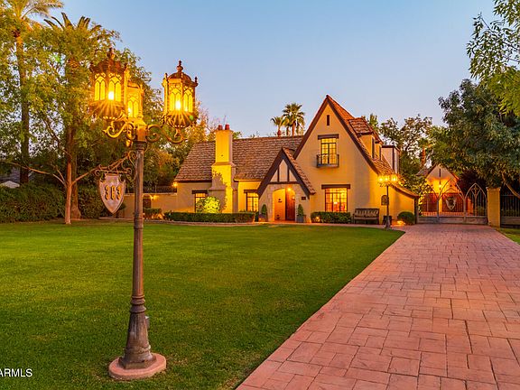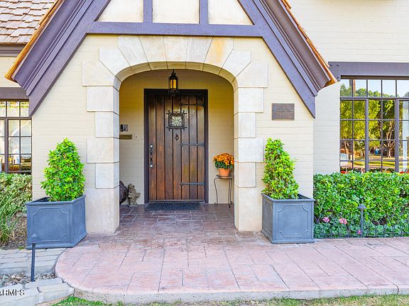 One of the most beautiful Historic properties in Phoenix! Built in 1927 in the Los Olivos Community, a Historic Neighborhood adjacent to the Arts District developed by Dwight B Heard, this iconic Storybook Tudor is always showcased when researching historic homes in Phoenix. With its dramatic Tudor architecture and expansive 3/4 acre property, the curb appeal alone takes you back in time! The current owner has meticulously retained all the historical charm and elegance while updating and improving the property. Elegant community rooms with soaring wood beamed ceilings, artfully crafted solid Mahogany doors and paneling, paned windows, Italian cornices and draperies, Steuben and other antique chandeliers. From the foyer is the dramatic staircase with its original Terrazzo floors. Beautiful Chef's kitchen with island, Subzero and Miele appliances. Laundry Room with antique cast iron sink. 3 bedrooms upstairs including the large Primary Bedroom with William Morris draperies. Primary Bath with original and preserved Green Ceramic Tile. Charming Guest Bath with Dormered Ceilings. Detached Coach House (Garage) with Guest House offering a full bath, loft bedroom, and kitchenette. Backyard Oasis with long rectangular pool, flanked by Italian Cypresses and featuring an imported English water feature. Beautiful Gazebo with commercial grade mist system for year round enjoyment. Large AC cooled Chicken Coop and orchard sporting over 15 fruit trees conveys unrivaled rural living in the center of the city. Make this iconic historical home located in the heart of the city yours to showcase!