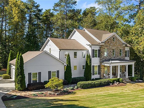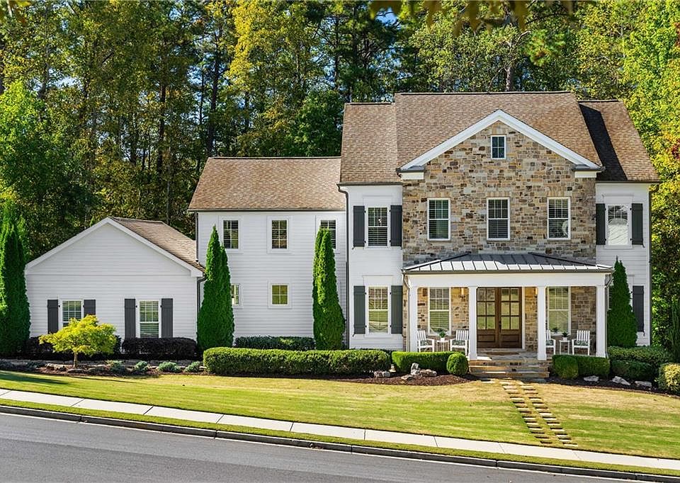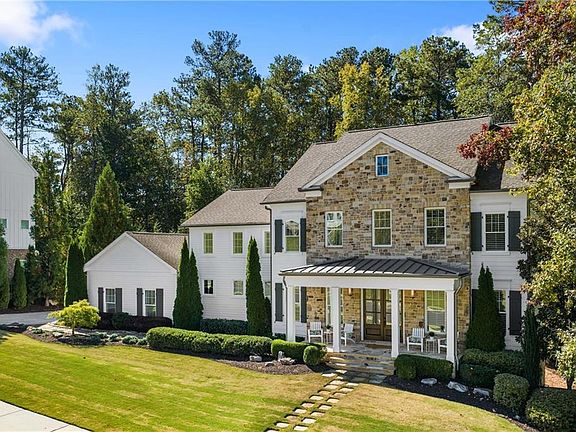 Set on a private acre in Milton’s coveted Highgrove community, this 5-bedroom, 5.5-bath farmhouse retreat effortlessly blends timeless charm with modern sophistication. The main floor impresses with soaring 10-foot ceilings, creating an open and airy ambiance throughout. At the heart of the home, the gourmet kitchen features beamed ceilings, double ovens, abundant cabinetry, and a spacious island with seating for four. A walk-in pantry offers exceptional storage, while the adjoining breakfast area opens to a brand-new deck overlooking the private, wooded backyard. The fireside family room flows seamlessly from the kitchen, enhanced by plantation shutters, shiplap, and custom trim for a warm yet refined feel. The main level also includes a formal dining room with a butler’s pantry, a private office, and a full guest suite with its own en-suite bath. A separate powder room serves the main living areas, and a thoughtfully designed drop zone is conveniently located just off the 3-car garage. Upstairs, the 9-foot ceilings complement the oversized primary suite, a luxurious retreat with dual walk-in closets and a vaulted spa-inspired bath featuring a soaking tub, double vanities, and a separate shower. Three additional bedrooms each include private en-suite baths, while a spacious laundry room provides added convenience. The terrace level, with 9-foot ceilings, expands the living space with a versatile bonus room and generous unfinished areas, perfect for storage or future customization. Additional highlights include wood moldings, an irrigation system, and a neighborhood complete with sidewalks and streetlights. Recent upgrades include a whole-home water filtration system (2025), whole-home surge protector with warranty (2024), a new back deck, and two HVAC units replaced within the past five years. Located just minutes from Milton’s top-rated schools — Birmingham Falls Elementary, Crabapple Middle, and Milton High — this home offers the perfect blend of farmhouse character and refined luxury in one of North Fulton’s most desirable communities. Welcome home!