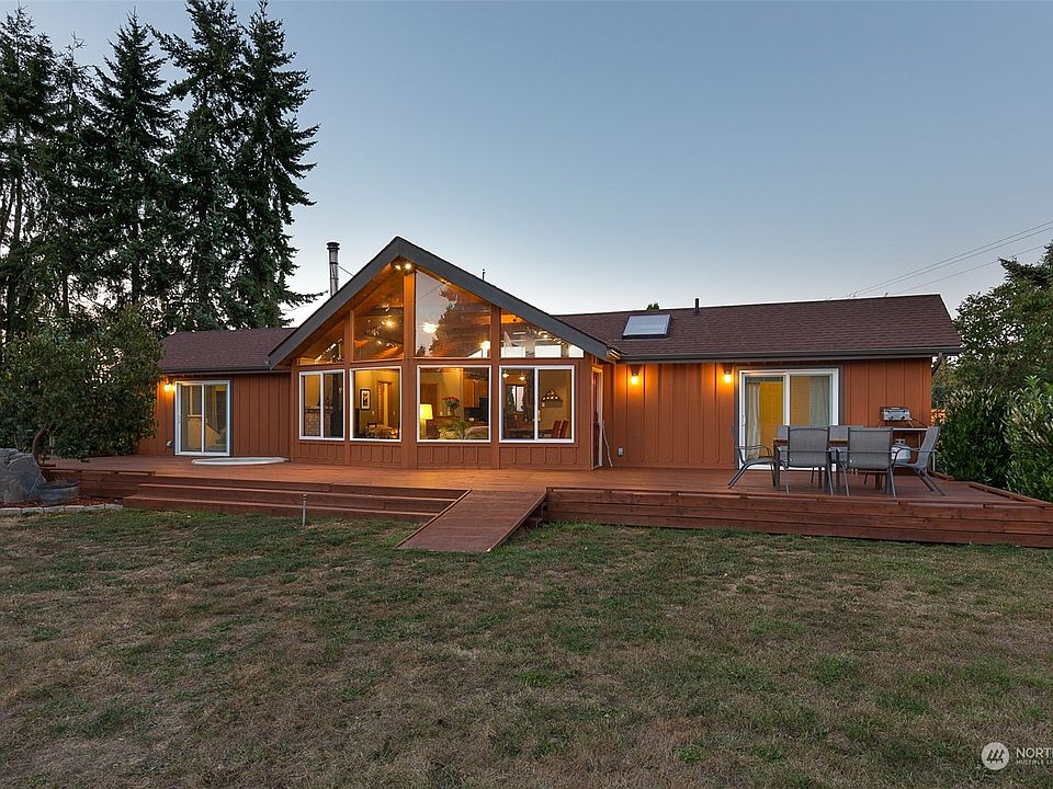 Welcome to the alluring community of Agnew! Equidistant between Sequim & Port Angeles, you'll find this tucked away Chalet style home on 1.38 acres of mature landscaping, boasting 2 Bd, 2 Bth. Enjoy mountain views from this prow front, vaulted ceilings & huge picture windows keep this home spacious & bright. Primary bedroom features 2 closets & a private recently updated bath with heated floor! A detached 1 Bd, 1 Bth guest cottage offers brand new appliances, updated bath, cozy pot-belly fireplace & tile flooring. The large, private, fully fenced back yard & extra-large deck are perfect for pets & entertaining. A storage shed & wood shelter complete this package. Quick proximity to Olympic Discovery Trail, Agnew Grocery & berry picking!