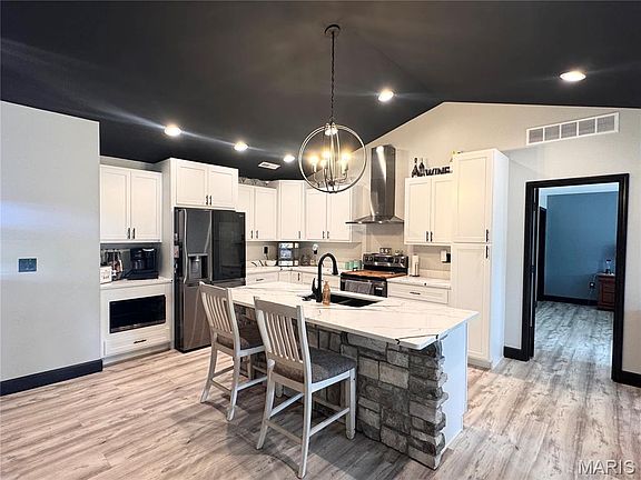 Contemporary new construction home located in one of Hannibal’s newest subdivisions. With vaulted ceilings and and cozy fireplace in the great room you will feel right at home. The kitchen features sleek granite countertops and kitchen appliances to convey. Off the kitchen you will find a separate laundry room with additional storage space. The primary suite includes a large walk-in closet and a primary bathroom with a double vanity and a tiled walk-in shower. Down the hall there are two more generous sized bedrooms and a common bathroom. Off the back of the home there is a covered porch, ideal for your morning coffee or grilling out with friends. Above the two car garage you will find ample about of storage space. Minnow Creek Subdivision is just minutes from Hannibal Regional Hospital and Highway 36. Schedule your private tour today!