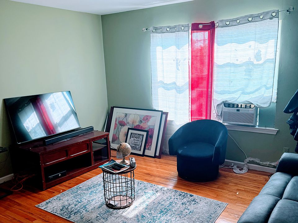 Located on a short quiet block, first floor unit has 3 bedrooms and 2 bathrooms available for rent. Open concept living/dining room combination, hardwood floors. No pets allowed, easy commute to NYC, Airport, and downtown. Utilities not included.
