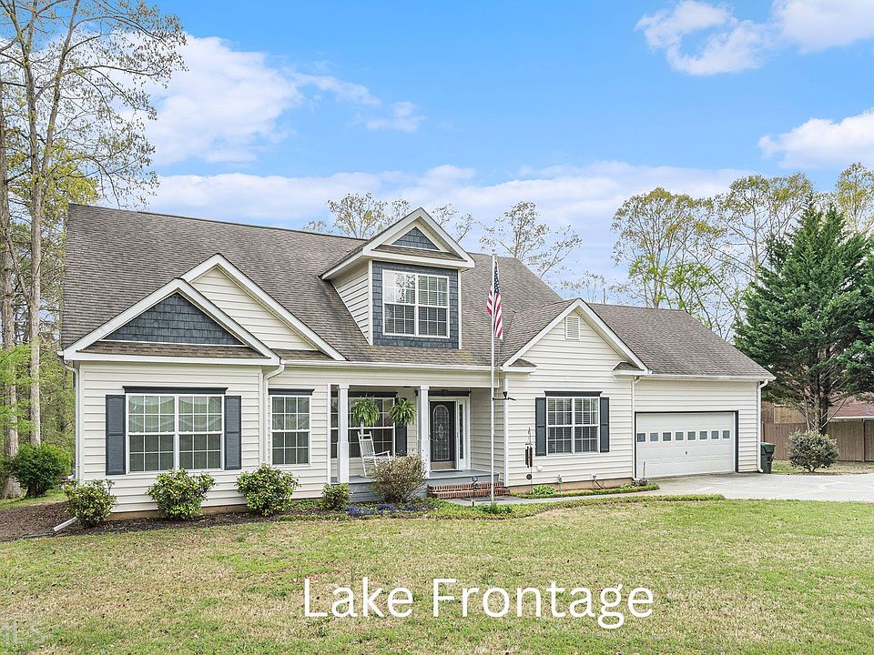 Escape to your very own lakeside paradise. This immaculate home is a true oasis nestled on a lushly landscaped lot in a tranquil subdivision featuring 50' of lake frontage! With its private dock, fire pit, storage shed and above ground swimming pool - you'll feel like you're living in your own personal resort! Wake up every morning to breathtaking lake views from the comfort of your living room or while lounging on the large back deck. The perfect blend of indoor-outdoor living spaces makes entertaining guests an absolute delight. Inside this stunning home are four spacious bedrooms and three luxurious bathrooms including an oversized master suite with double vanities, jacuzzi tub and separate shower. The updated kitchen features top-of-the-line appliances that will make cooking a pleasure for any chef. Additional highlights include a separate dining room, flex space perfect for use as an office or hobby room and an additional bedroom and bathroom upstairs for convenience. Oversized garage provides ample parking space while the roommate floor plan ensures everyone has their privacy when they need it most. Don't miss out on this rare opportunity to experience serenity and tranquility every day!
