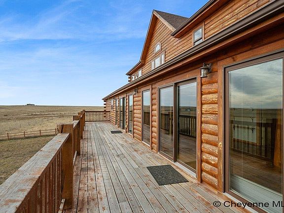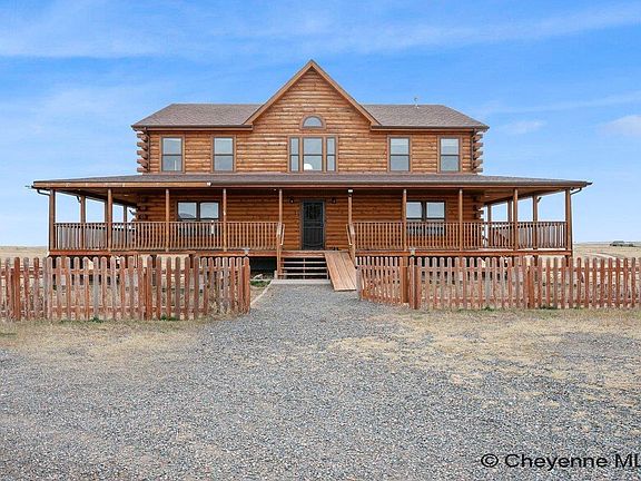 Dreaming about that perfect home in Wyoming, with acreage, unlimited views, room for toys, lots of animals, barns, outbuildings, fenced 80 acres and living in your own custom-built home? Welcome home, this is the one for you. This home has so much to offer, just to name a few, 4 bedrooms, 2 primary bedrooms and bathrooms, vaulted ceilings with a ton of windows to enjoy your own views of sunsets and sunrises. Formal and informal dining area, kitchen is to-die-for, new gas range, center island, custom cabinetry with granite counter tops. Walk in pantry and mud room area off of the wrap around deck. Walk out basement is ready for your personal touches. Real hardwood floors, pellet stove and a large sunroom off the living room, perfect for an additional bedroom or office with high-speed Internet available to make this a great home office. Main floor primary bedroom, upstairs is a loft area, another primary bedroom, gun safe area and two additional bedrooms, Detached oversized two car garage, out building with the ability to have indoor RV storage with an additional bathroom. The second outbuilding was designed for a barn but could have multiple uses. All just 20 minutes from Cheyenne. Call for your personal showing you will not be disappointed.