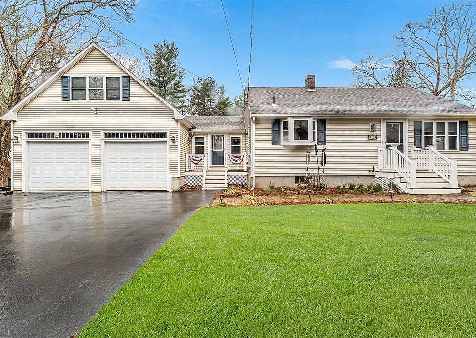 This charming Cape-style home in Bellingham, MA, offers modern updates and timeless appeal. Originally a three-bedroom, it has been converted into a spacious two-bedroom layout. The first floor features beautiful hardwood floors and a renovated kitchen with a two-year-old dishwasher. An inviting living room and updated ¾ bath add to the convenience. Upstairs, enjoy a full bath and 2 bedrooms. The oversized two-car garage includes a 26x36 workshop, perfect for projects, storage or future expansion of a primary bedroom. The versatile three-season room connects the garage and house, ideal for entertaining or relaxing. With two mini splits for heating and cooling, comfort is ensured year-round. This home seamlessly blends functionality and style, making it an ideal choice for modern living. Don't miss this opportunity to make it yours. Welcome home!