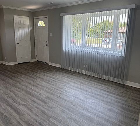 Side driveSpacious backyardQuartz countertopsNew vinyl sidingLaminate flooringStainless steel appliancesFreshly painted gray walls
